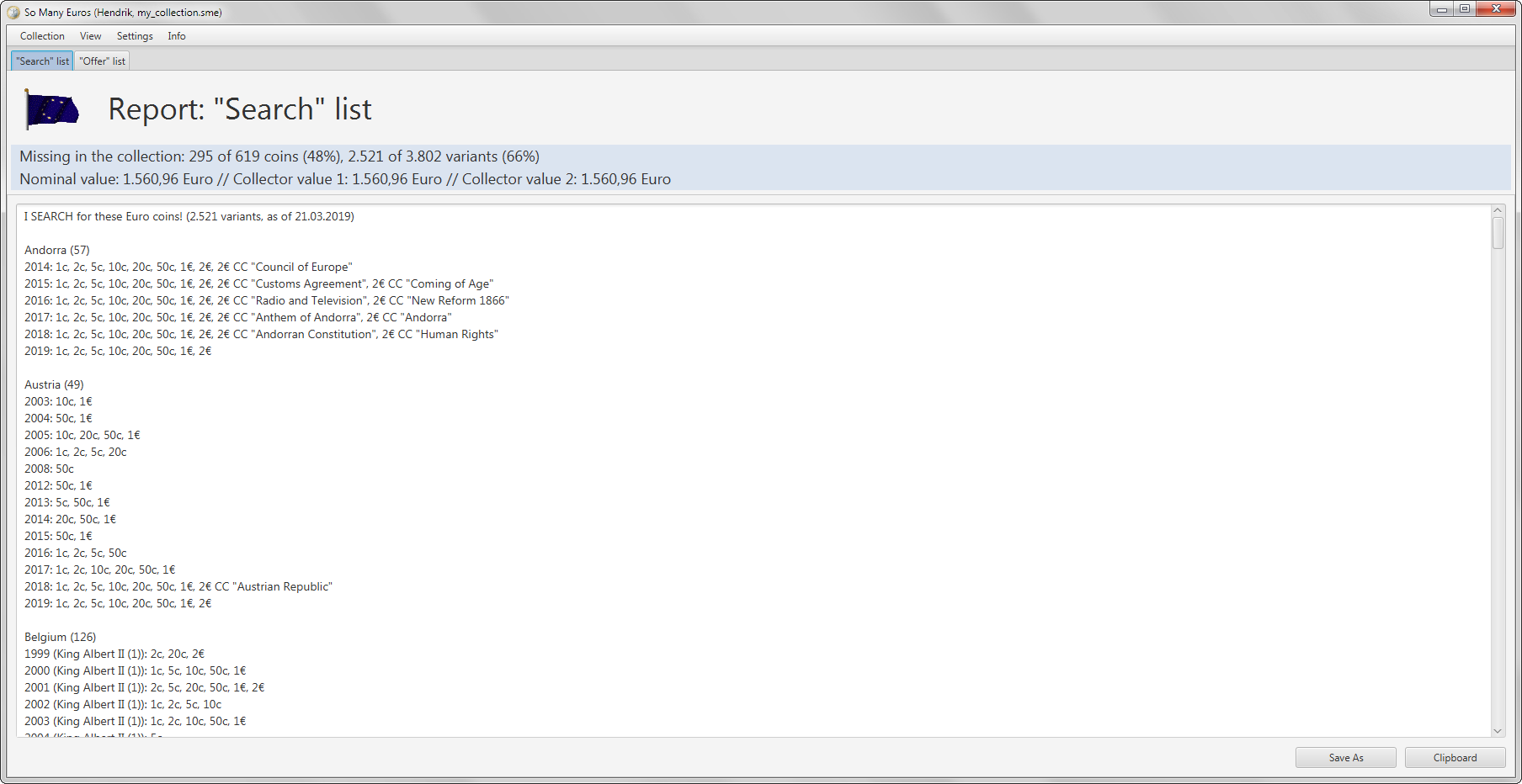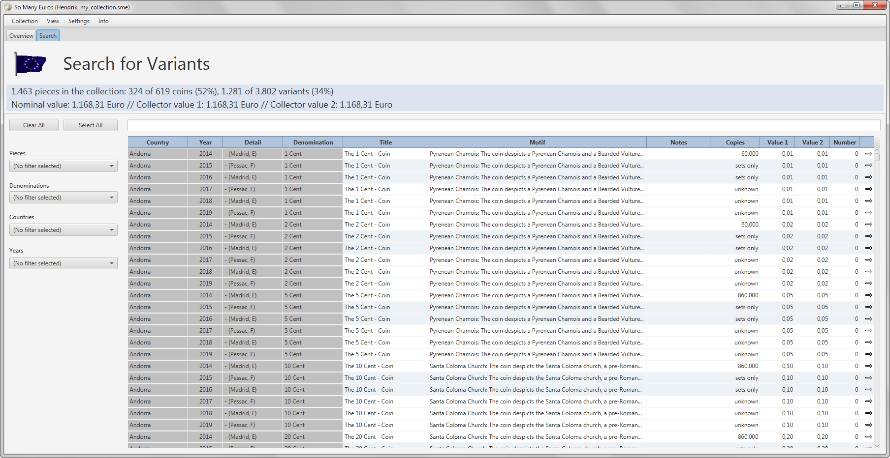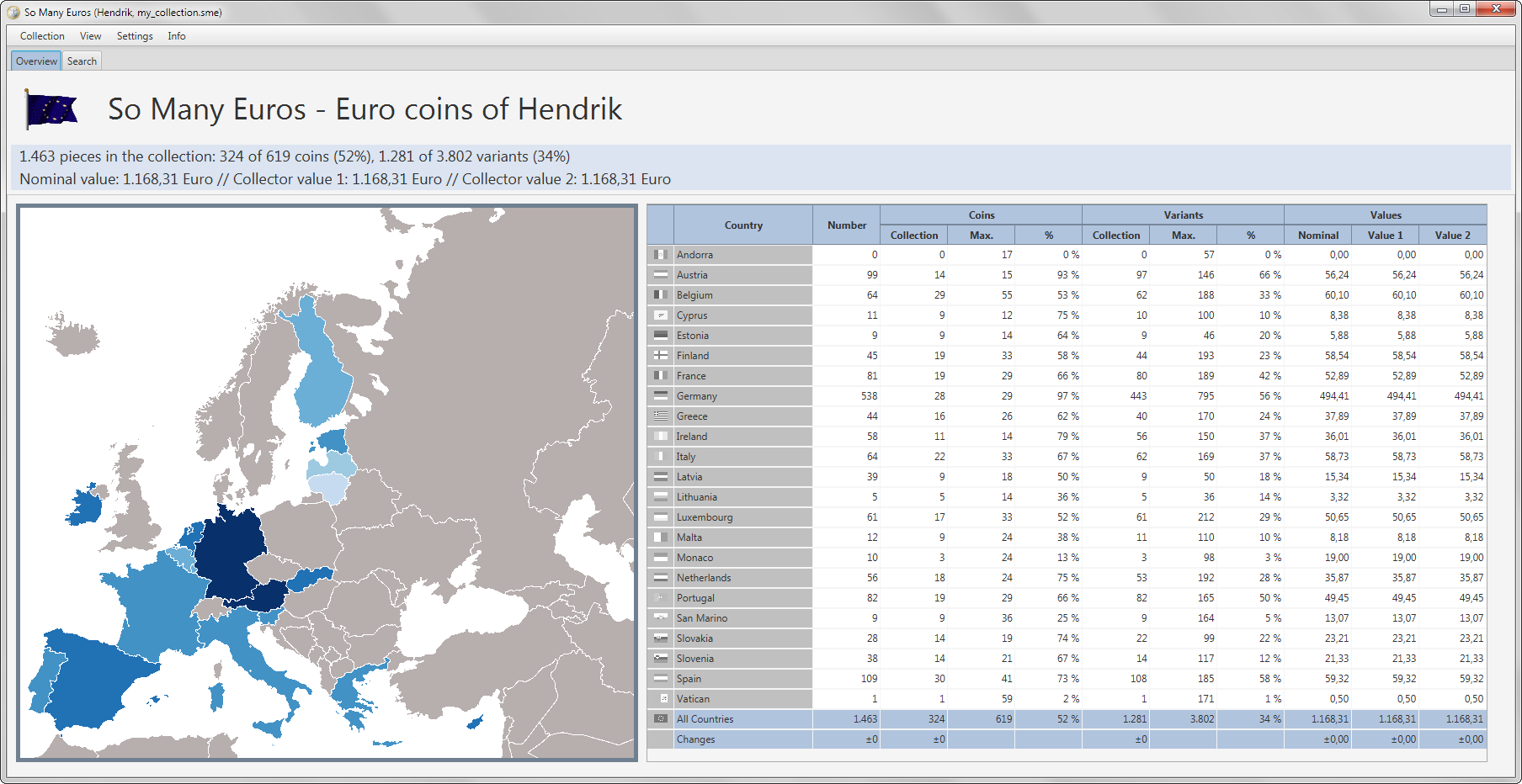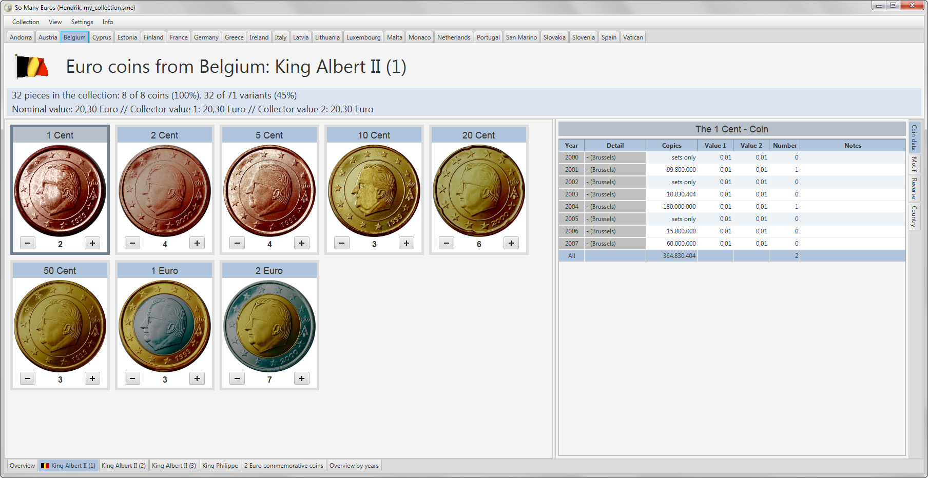 On this page you will find screenshots showing the main features of So Many Euros. Please click on any picture to see a full size image. If you want to have a look at the program yourself, try installing the free test version.